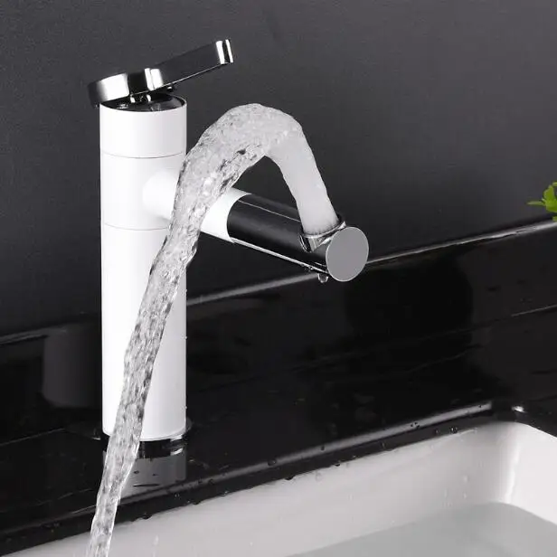 Basin Mixer Tap 360 Degree Rotate Type Basin Faucet White and Silver chrome Finish Bathroom Faucets