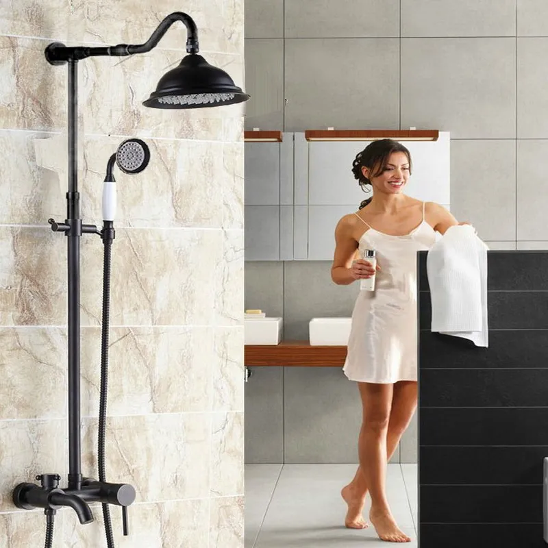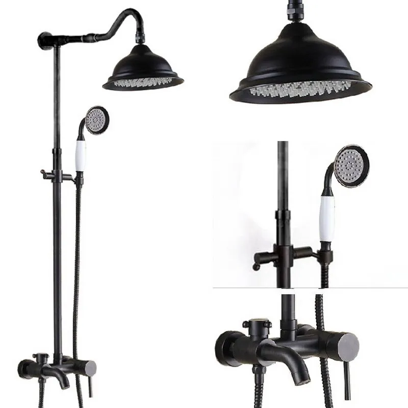 Black Oil Rubbed Brass Single Handle Bathroom Rainfall Rain Shower Head Faucet Set Bath tub Mixer T