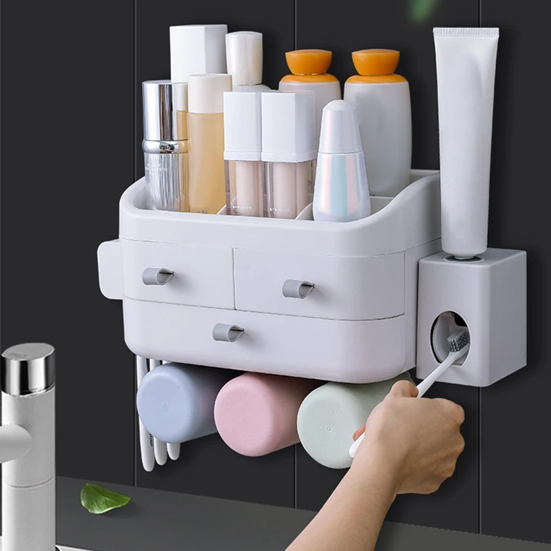 HOT SALE Toothbrush Holder Bathroom Shelf Free Punching Wall Hanging Suction Cup Type Environmentally Friend