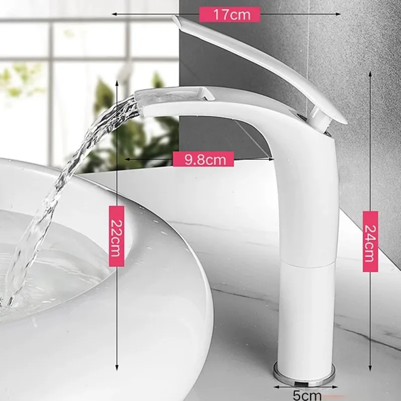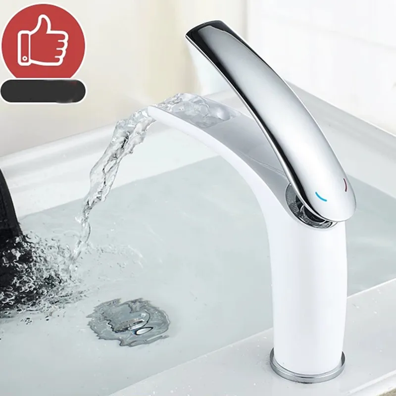 LIUYUE Basin Faucets White Brass Tall/Low Bathroom Open Type Waterfall Basin Mixer Faucet Cold Hot