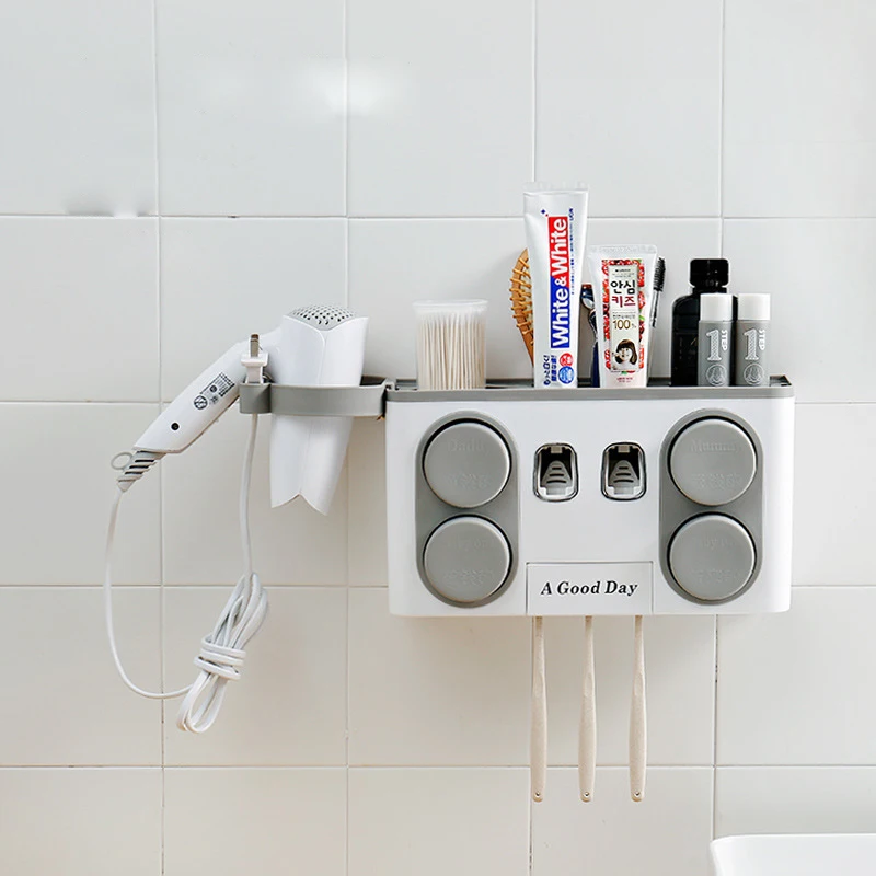 TOP GOUGU Toothbrush Holder Toothpaste Squeezer Dispenser Cup Dryer Storage Rack Bathroom Accessories S